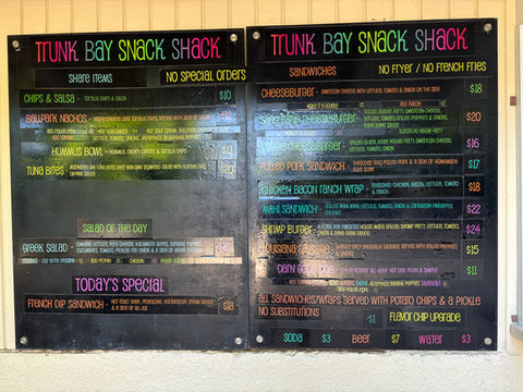 Food & Drinks: The Trunk Bay Snack Shack is open from 10 a.m. to 4 p.m. They sell burgers, sandwiches and drinks. The Beach Bar mixes up tasty Painkillers, frozen Lime-n-da-Coconut drinks and more.