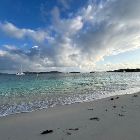 One of the most accessible hikes on St. John, the Lind Point Trail starts behind the National Park Visitor Center in Cruz Bay and provides a forested escape within minutes of town. The main trail runs roughly 2.3 miles round trip, with side paths to Salomon and Honeymoon beaches. It ascends gradually through dry forest where bay rum trees, agave and prickly pear grow amid loose coral rubble. At a fork, the lower trail continues along the contour to Salomon Bay while the upper trail climbs to a ridge with views of Cruz Bay and St. Thomas. Both routes reunite near Honeymoon Beach, a crescent of white sand accessible only by foot or boat. On the way you may encounter hermit crabs and anole lizards; in spring the air is fragrant with bay rum and maho blooms. A short spur leads to Lind Point Overlook, where wooden benches invite you to rest and take in the turquoise panorama. With its moderate difficulty and easy access, the trail is popular for morning jogs and sunset strolls. Carry water and be aware that there are no facilities on Salomon or Honeymoon beaches - pack out what you bring.